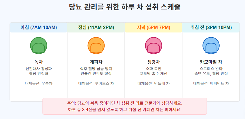 지금까지 소개한 10가지 차는 자연스럽게 혈당을 조절하고 당뇨 합병증을 예방하는 데 도움을 줄 수 있습니다. 이러한 차들을 일상에 어떻게 효과적으로 활용할 수 있을까요?