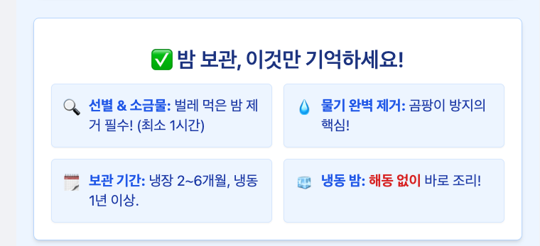 기본 보관법은 이제 다 배우셨어요! 여기에 더해 밤을 더욱 맛있고 오래 보관할 수 있는 꿀팁 3가지를 알려드릴게요.
