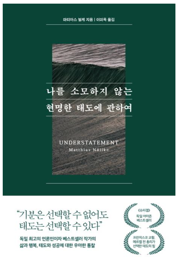 회사 일로 심적으로 많이 힘들었던 시기가 있었습니다. 성공, 그리고 성공하지 못한 삶은 실패한 것이라는 생각으로 스스로를 채찍질하던 나날들이었죠. 그러던 중 서점에서 마티아스 뇔케의 《나를 소모하지 않는 현명한 태도에 관하여》라는 책을 발견했습니다. 제목이 며칠 동안 머릿속에서 맴돌았고, 분명 지금의 나에게 꼭 필요한 책이라는 직감이 들었습니다. 밀리의 서재에서도 볼 수 있었지만, 이 책은 꼭 소장하고 싶다는 생각에 구매했습니다.