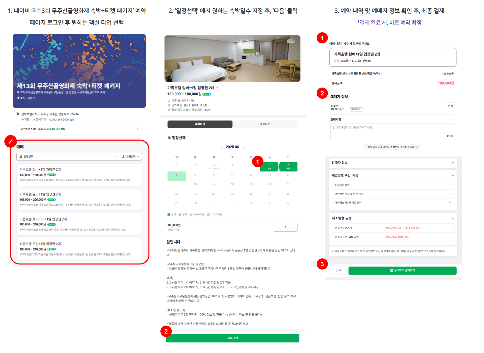 - 무주덕유산리조트 패키지: 영화제 공식 홈페이지에서 제공하는 숙박 패키지로, 리조트 숙박권과 무주등나무운동장 1일 입장권 2매가 포함되어 있습니다. 리조트에서 편안하게 묵으면서 영화제를 즐길 수 있는 가장 편리한 방법이에요.
