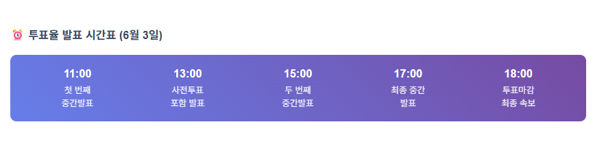 - 투표율 발표: 본 투표일 오후 1시부터 사전투표 결과 포함 계산