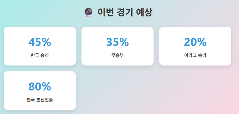 정말 중요한 건 숫자나 전력 분석보다도 우리 모두의 응원이라고 생각해요. 비록 새벽 시간이지만, 전국의 축구팬들이 하나 되어 응원한다면 분명 좋은 결과가 있을 거예요. 이번 경기를 통해 11회 연속 월드컵 진출이라는 역사적인 순간을 함께 만들어봐요! 여러분도 꼭 6월 6일 새벽 3시 15분에 TV 앞에서 함께 응원해주세요.