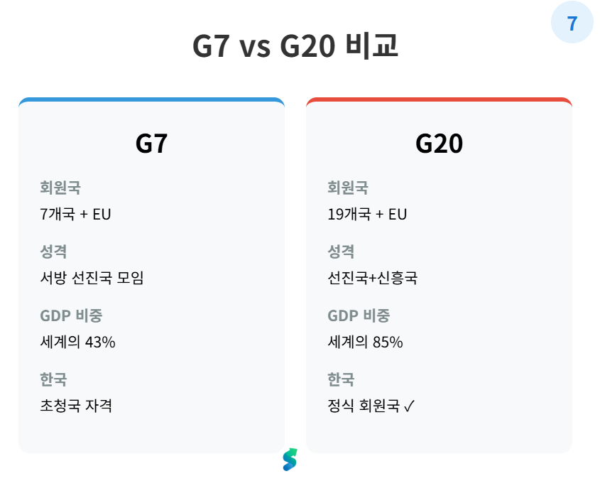 많은 분들이 G7과 G20을 헷갈려하시는데요, 간단히 정리해드릴게요!