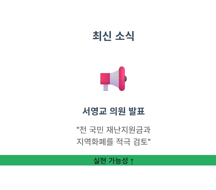 중요한 소식이 들어왔습니다! 더불어민주당 원내대표 경선에 출마한 서영교 의원이 오늘 기자회견에서"전 국민 재난지원금과 지역화폐를 적극 검토하겠다"고 공식 발표했습니다.