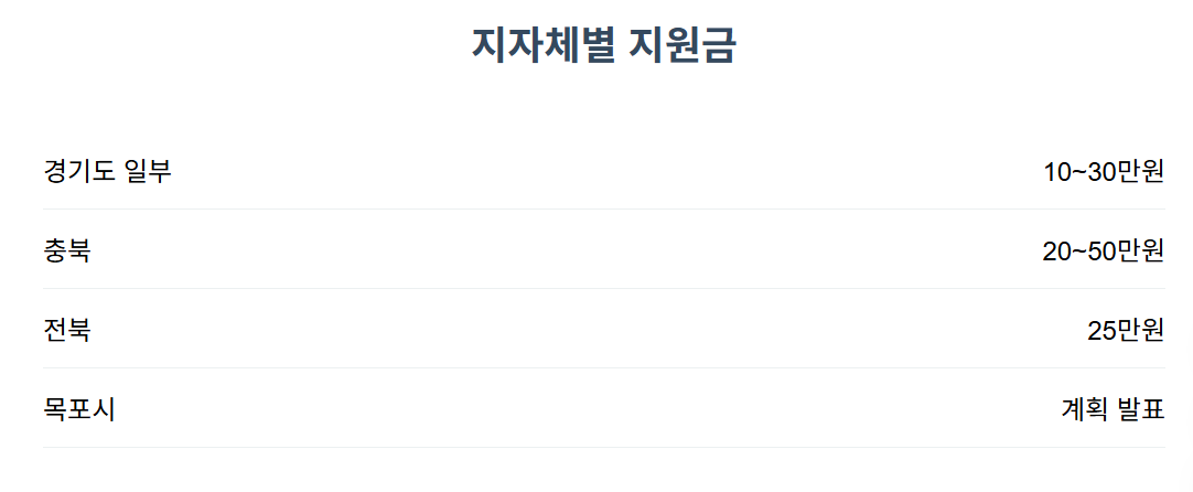 경기도 일부 지역: 10만원~30만원 충북, 전북 지역: 20만원~50만원 목포시: 2025년 민생경제회복지원금 계획 발표