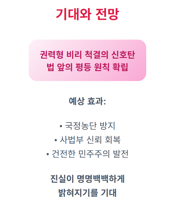 그동안 검찰의 편파 수사에 대한 비판이 많았는데, 특검을 통한 공정한 수사가 이뤄진다면 사법부에 대한 국민 신뢰 회복에도 기여할 수 있을 것 같아요.