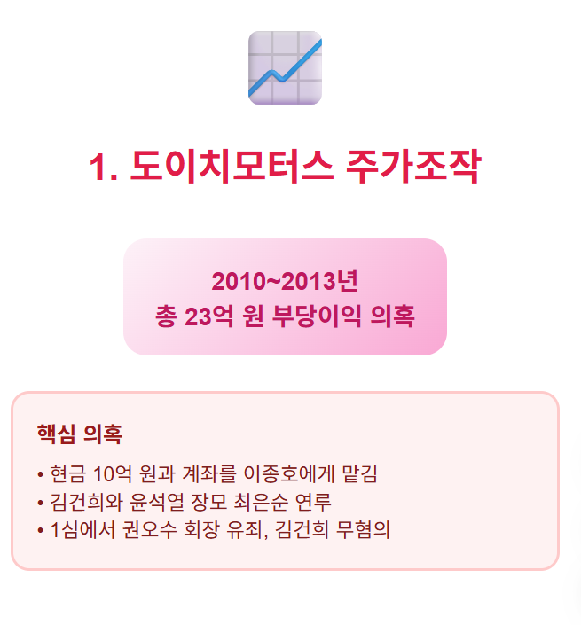 - 이미 1심에서 권오수 도이치모터스 회장 등이 유죄 판결을 받았지만 김건희는 무혐의 처분