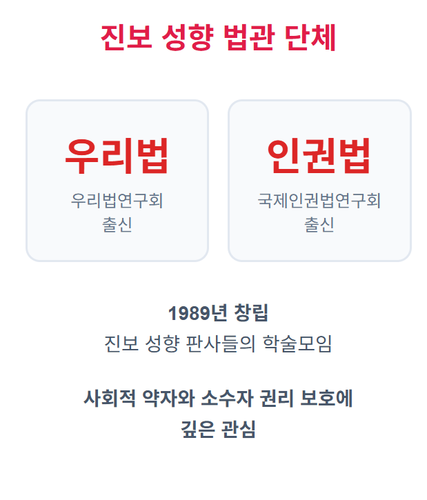우리법연구회는 1987년 6.29 선언 후에도 제5공화국의 사법부 수뇌부가 유임되어 발생한 2차 사법파동을 계기로 1989년에 창립된 법관들의 연구모임이에요. 진보 성향 판사들의 학술모임으로 유명하죠.