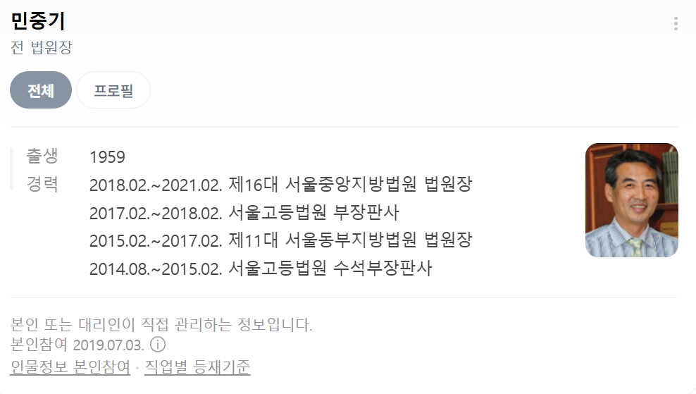 - 2014년 8월~2015년 2월: 서울고등법원 수석 부장판사