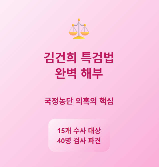 안녕하세요~ 오늘은 뜨거운 관심을 받고 있는 김건희 특검법에 대해 상세히 알아보겠습니다! 이재명 대통령이 13일 전격 임명한 민중기 특별검사가 과연 누구인지, 그리고 김건희 전 영부인과 관련된 어떤 의혹들이 수사 대상인지 궁금하셨죠? 김건희 특검법은 정식 명칭이 윤석열 전 대통령 배우자 김건희와 명태균·건진법사 관련 국정농단 및 불법 선거 개입 사건 등 진상규명을 위한 특별검사 임명 등에 관한 법률"입니다. 정말 긴 이름이지만, 그만큼 다뤄야 할 사안들이 많다는 뜻이에요! 오늘은 김건희 특검법 특검으로 임명된 민중기 특검 프로필 부터 15개 수사 대상까지 총정리해 드리겠습니다.