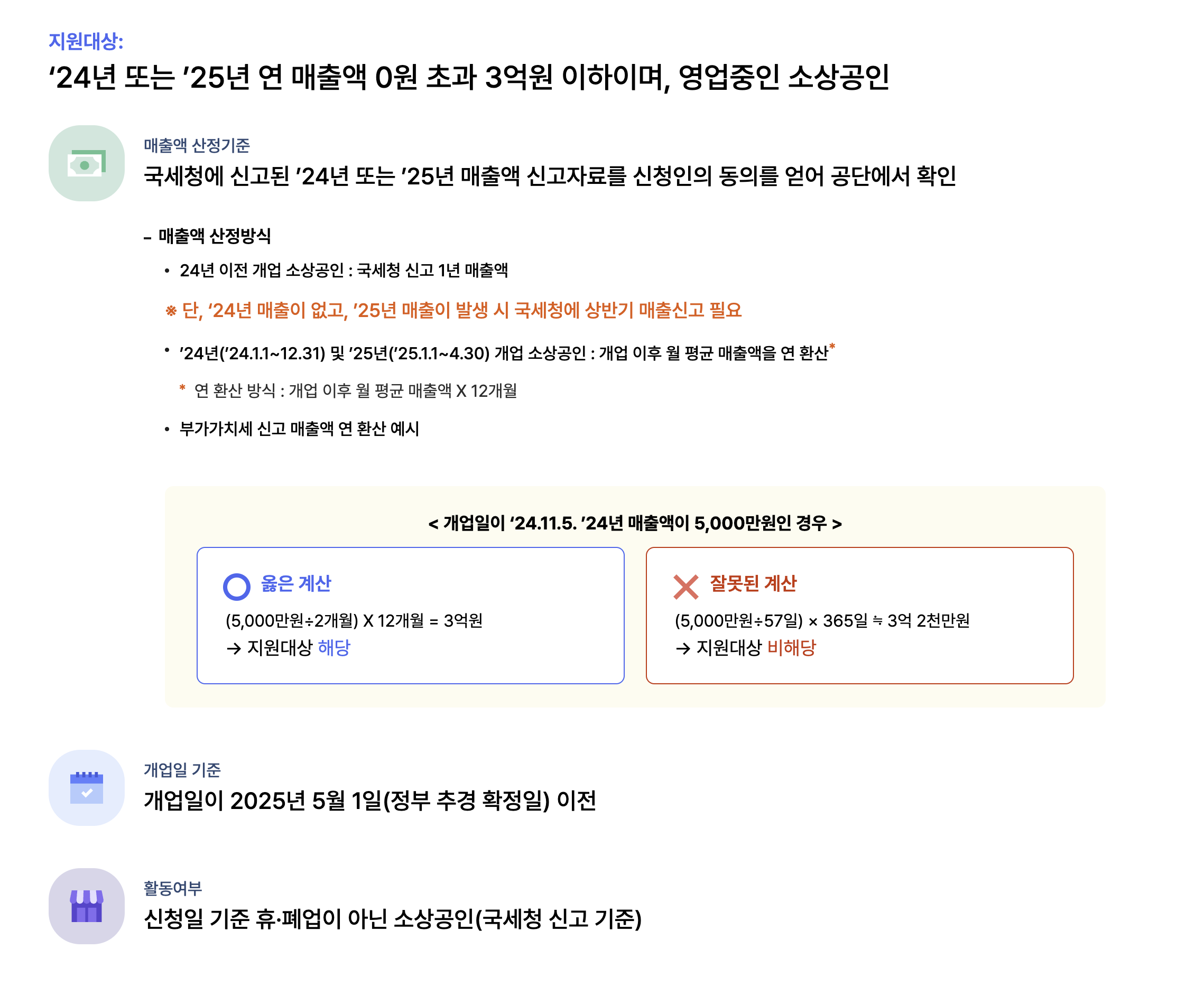 2024년 또는 2025년 연매출액이 3억원 이하인 소상공인(개인·법인 모두 가능)