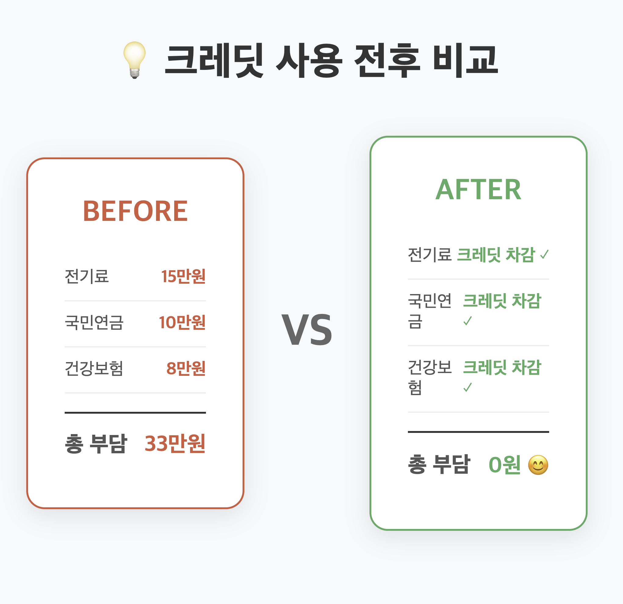 💡 전기요금 15만원 결제 → 크레딧에서 15만원 자동 차감 (잔액 35만원)
