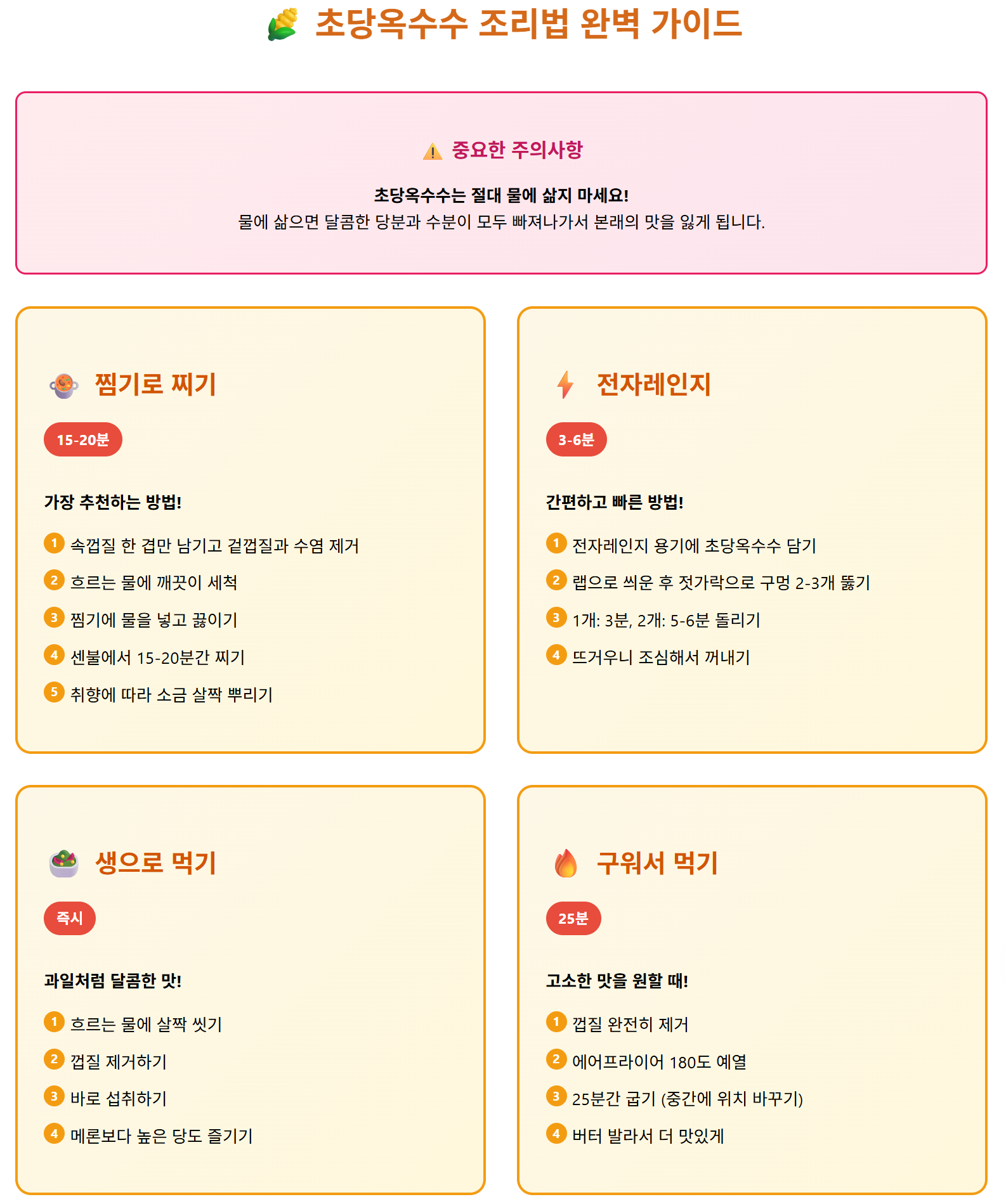🚫 주의! 초당옥수수는 절대 삶으면 안 돼요