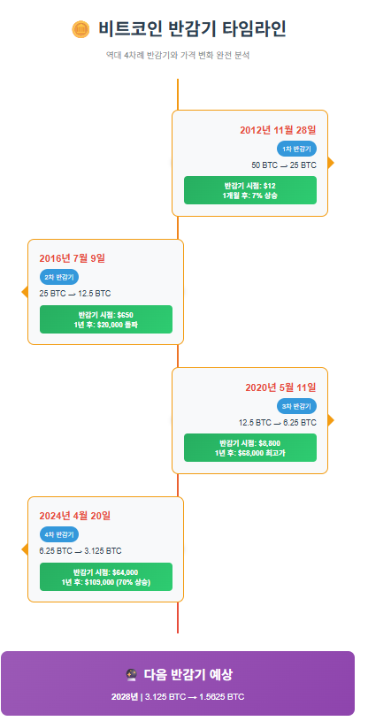 - 다음 반감기는 2028년경 예상 (보상 1.5625 BTC로 감소)