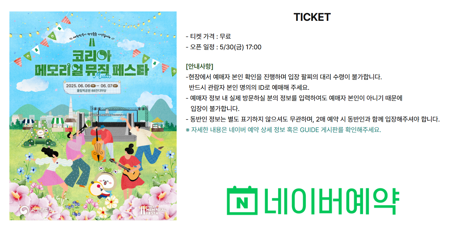 - 티켓: 무료 (네이버 예약 - 5월 30일 17:00 오픈)
