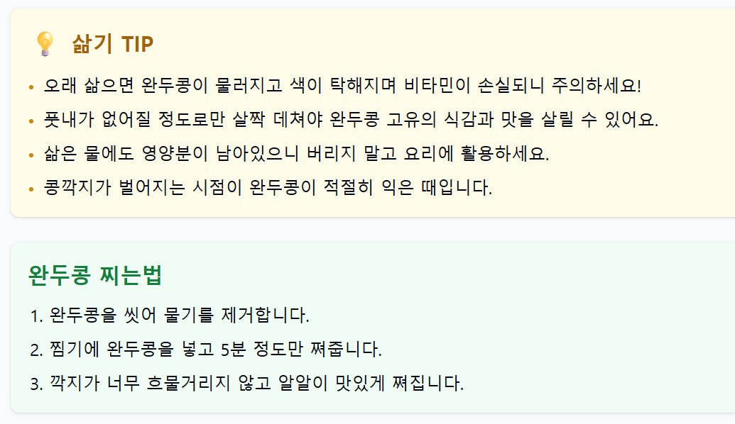 - 소화 불량: 다른 콩류와 마찬가지로 가스가 차고 더부룩한 증상이 있을 수 있습니다. 한 번에 많은 양을 먹지 않는 것이 좋습니다.