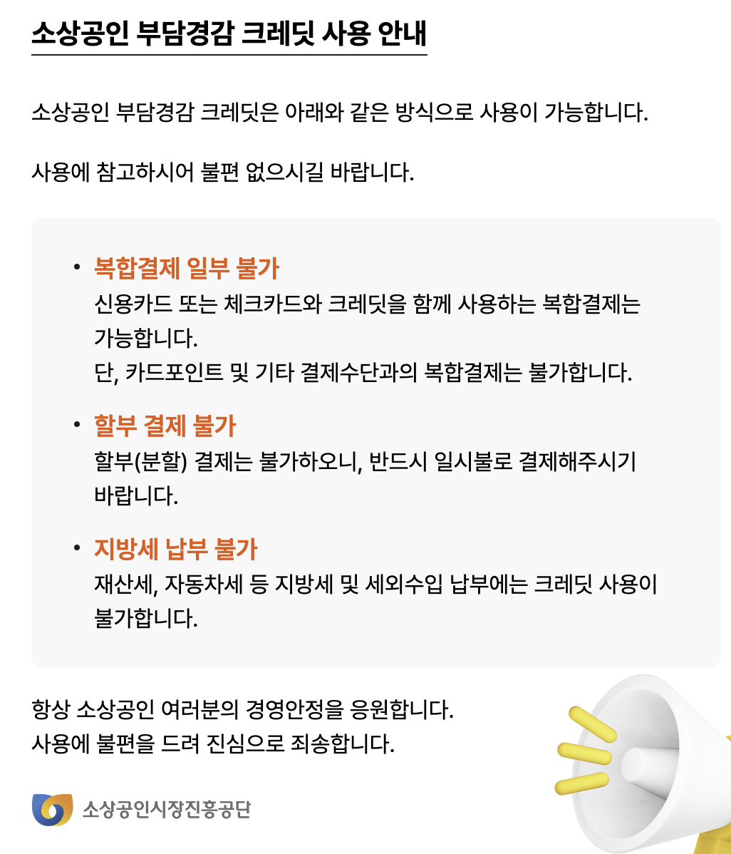 어디에 사용할 수 있나요? 소상공인 부담경감 크레딧사용처와 방법